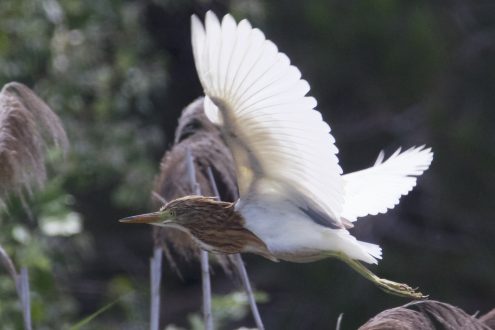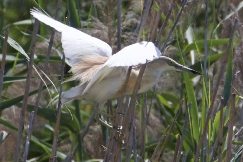 Hasta la primavera de 2025 no había visto prácticamente Garcillas cangrejeras: solo una, en el cañar de una acequia cercana. Pero el verano pasado había un buen número en un humedal próximo al río Segura, cerca de Orihuela. Aparentemente, estaban anidando allí.